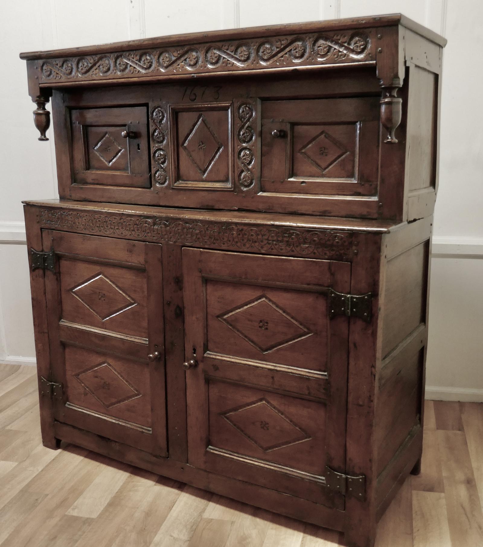 17th Century Carved Oak Court Cupboard, Livery Cupboard