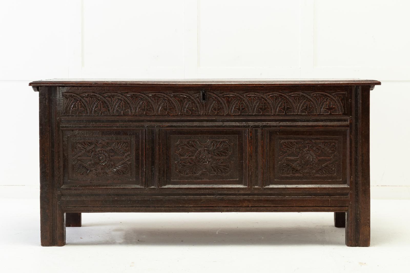 17th Century English Oak Panelled Coffer (1 of 9)
