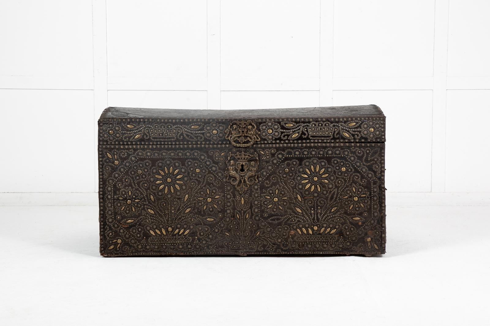 17th Century French Brass Studded Chest (1 of 8)