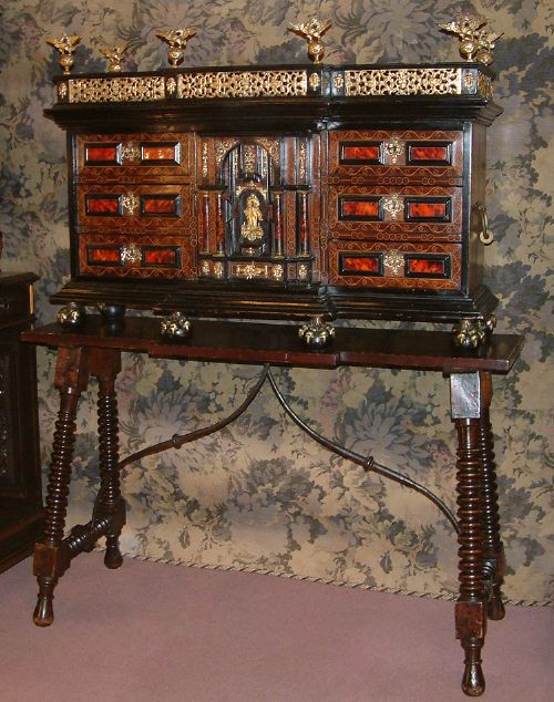 17th Century Italian Cabinet On Stand Vargueno Monetiere