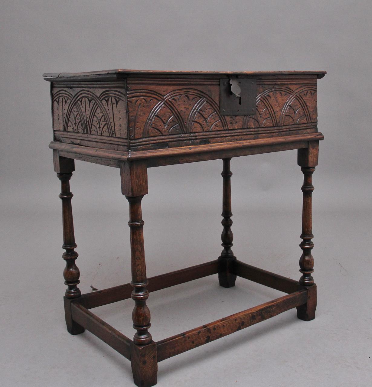 17th Century Oak Bible Box on Later Stand