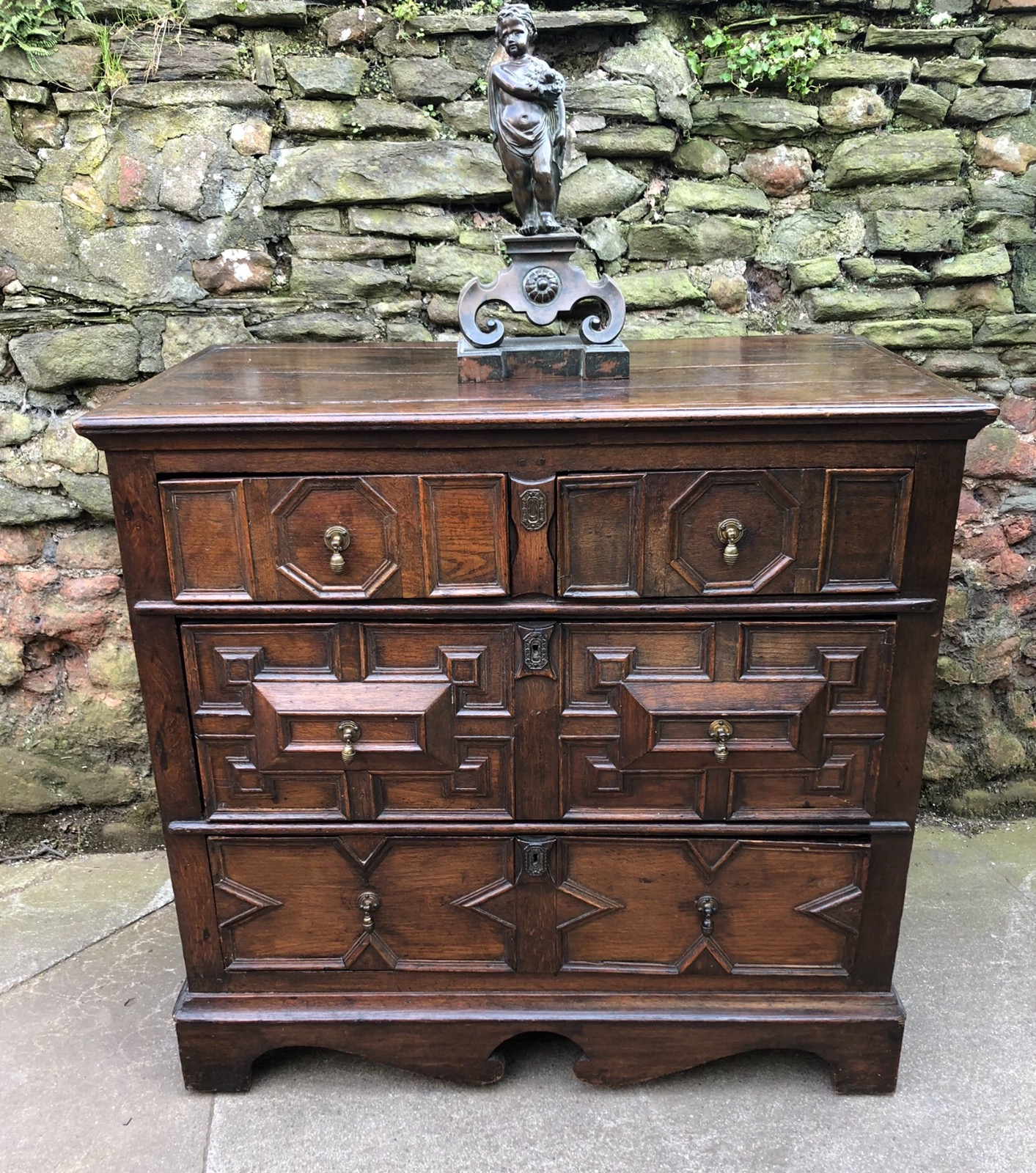 17th Century Oak Block Fronted Chest of Four Drawers