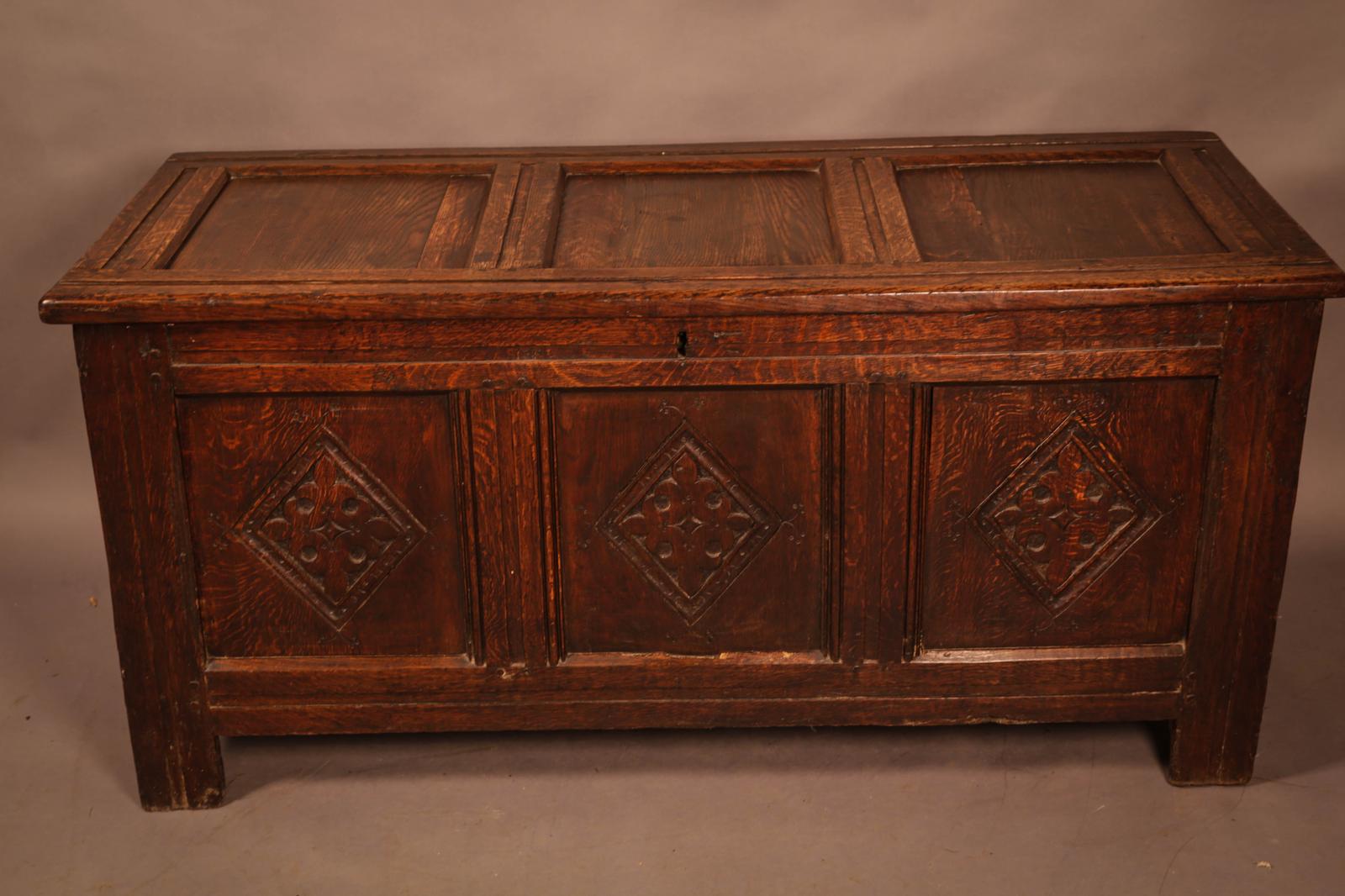 17th Century Oak Coffer 3 Panel Front (1 of 8)