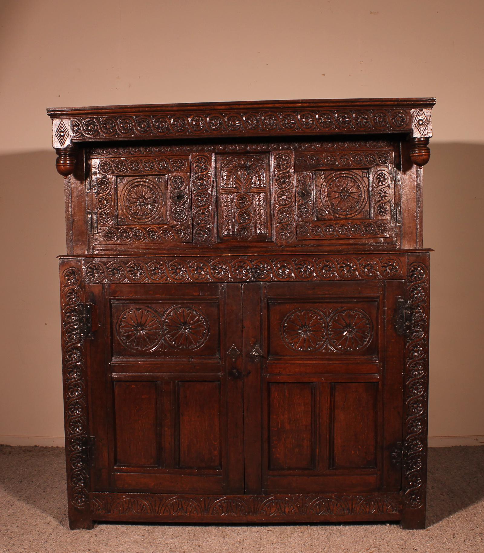 17th Century Oak Press Cupboard Buffet-north of England