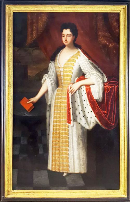 17th Century Oil Portrait Queen Anne of England 1702-1714 & Earlier Princess Anne of Denmark 1683-1702 Last of Stuart Dynasty by Follower of Godfrey Kneller 1647-1723