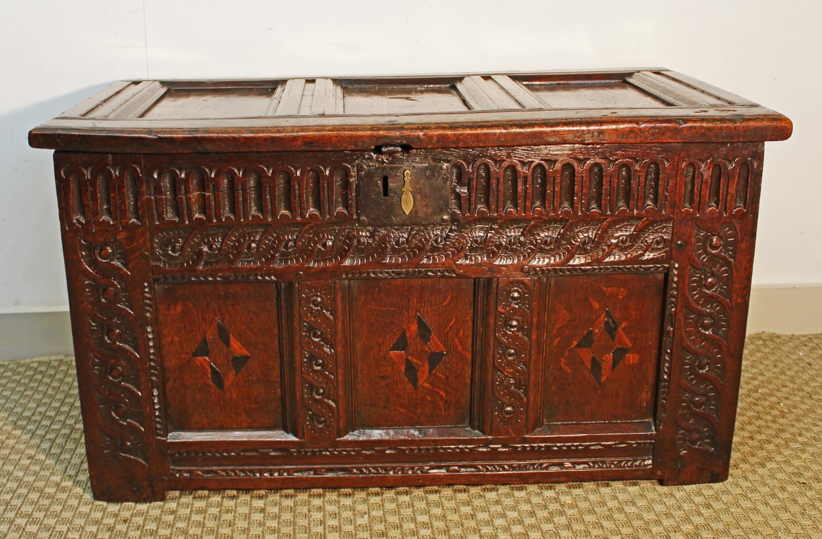 17th Century Panelled and Carved Oak Coffer (1 of 12)