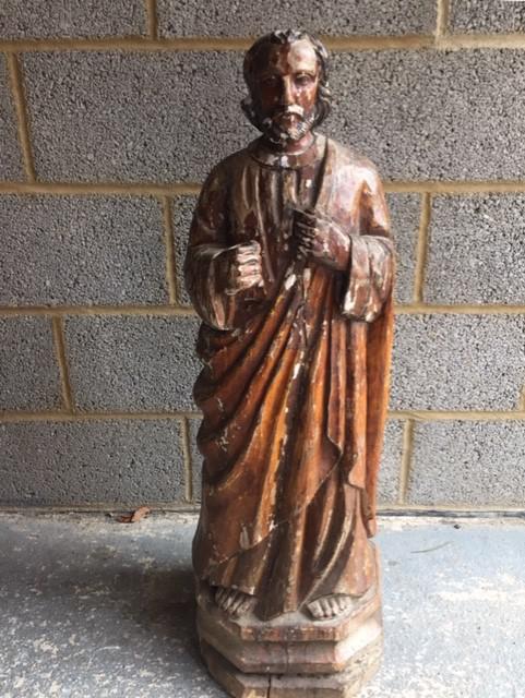17th Century Polychrome Carved Walnut Figure of a Saint