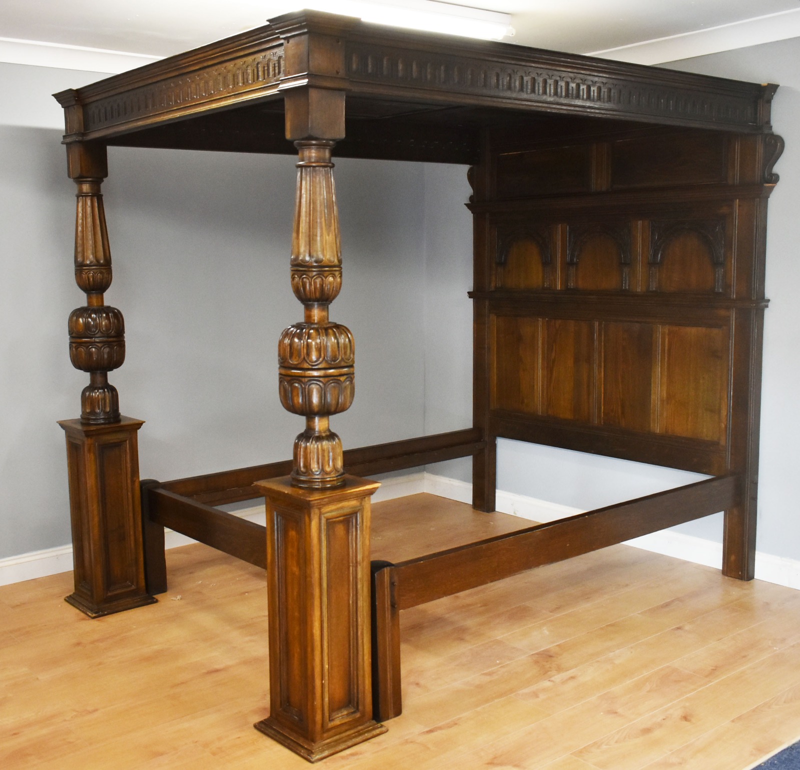 17th Century Style Carved Oak Four Poster Bed c.1930