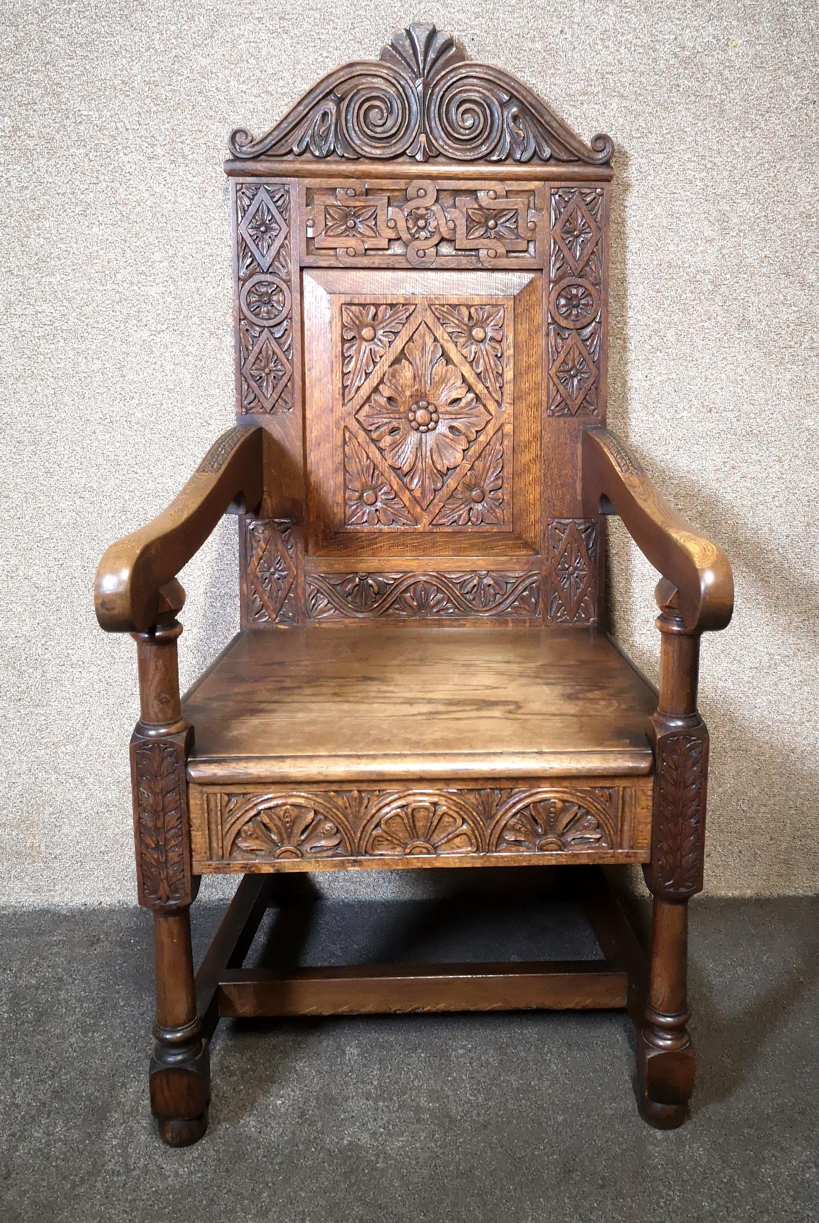 17th Century Style Carved Oak Wainscot Chair (1 of 12)