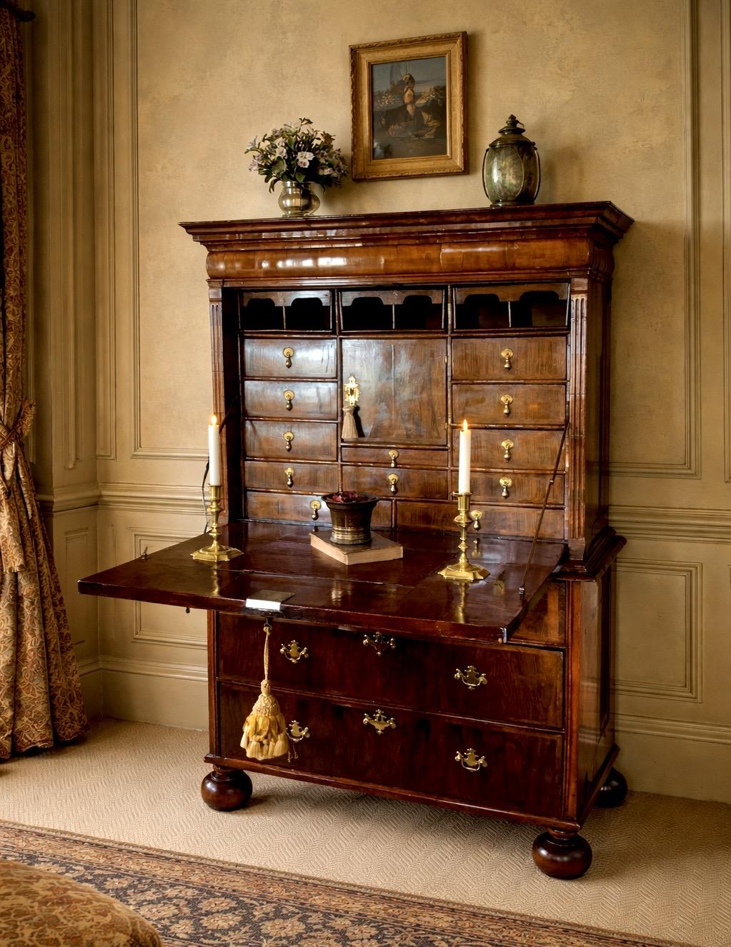 This 17th-century Walnut Escritoire is located in Cumbria, United Kingdom