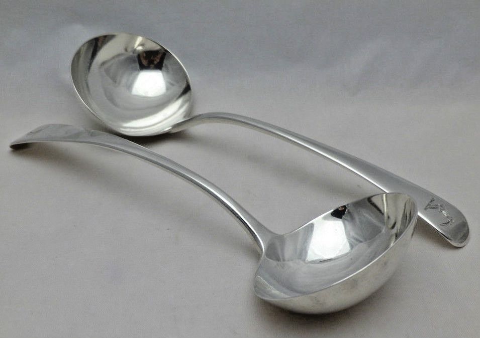1800 Pair of Antique George III Solid Silver Cutlery Sauce Ladles
