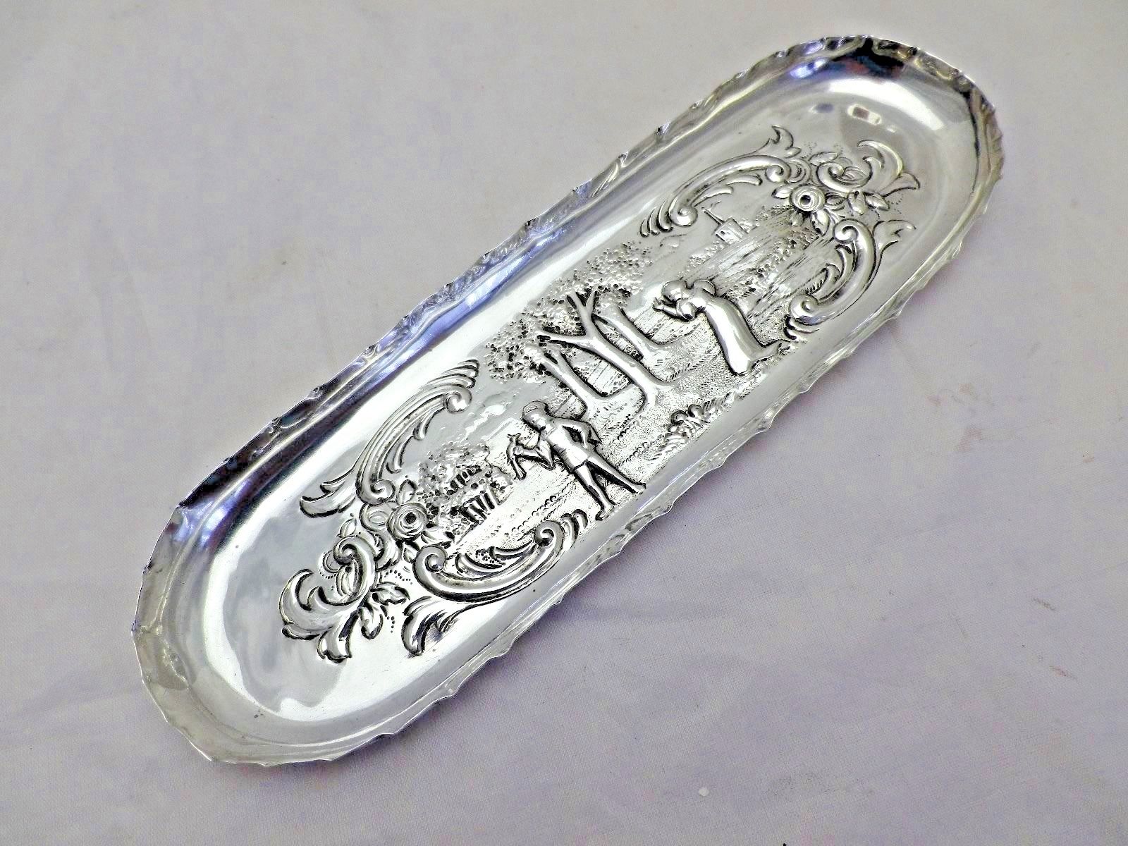 1804 Georgian Antique Solid Silver Quill Pen Rest Flacon Scene