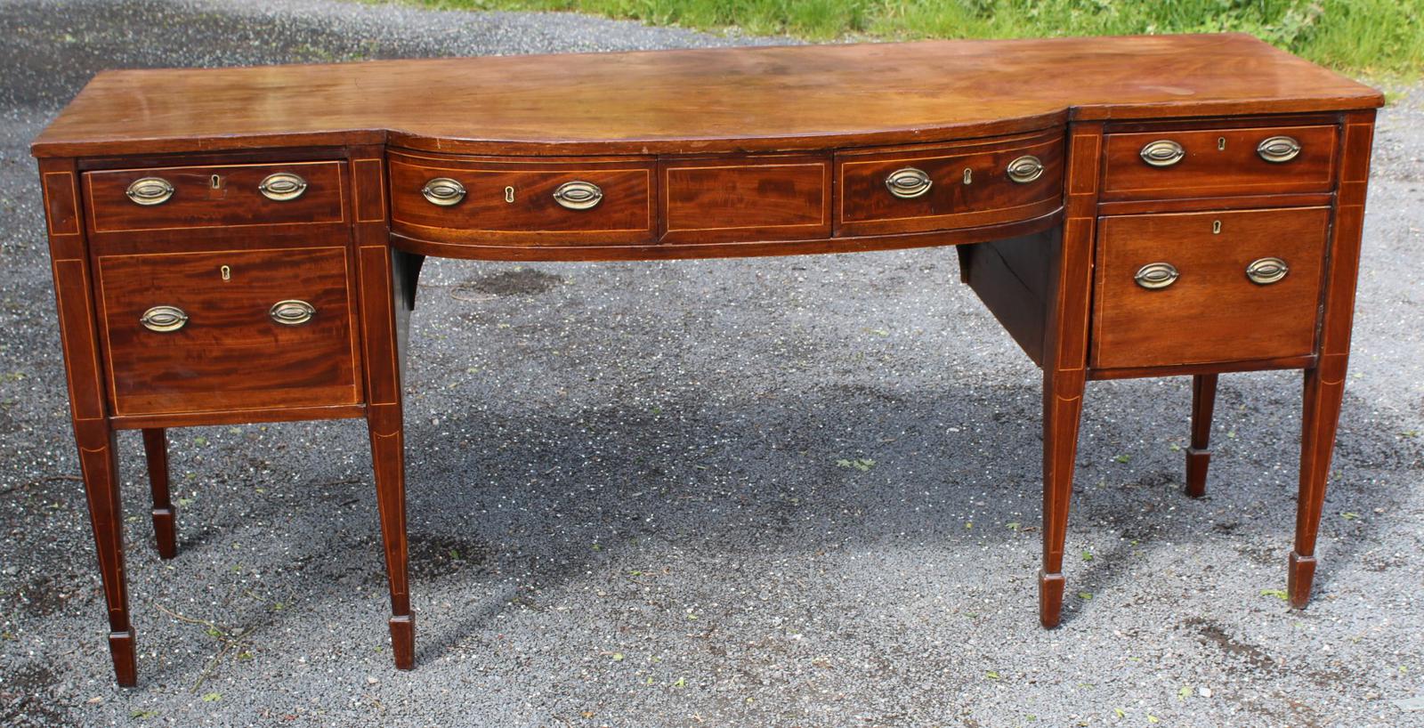 1830's Large Bow Front Mahogany Sideboard with Inlay + Key