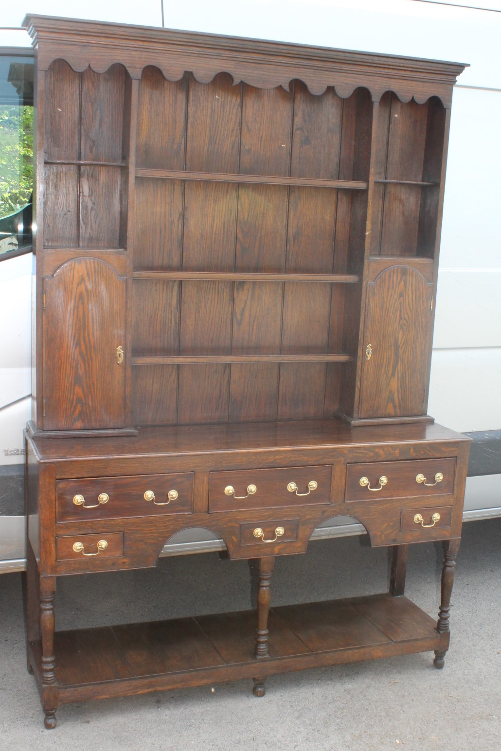 1830s Large Oak Dresser with Display Rack and Drawers on Stand