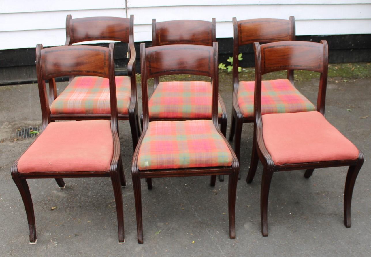 1830's - Regency Set 6 Mahogany Barback Dining Chairs + Pop Out Seat 5+1 Carver