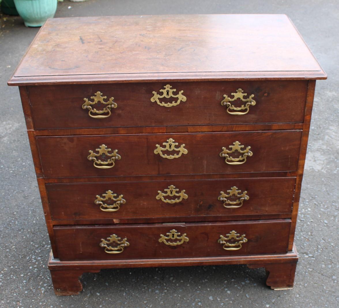 1830's Small Red Walnut Chest of Drawers with Oak Lined Drawers