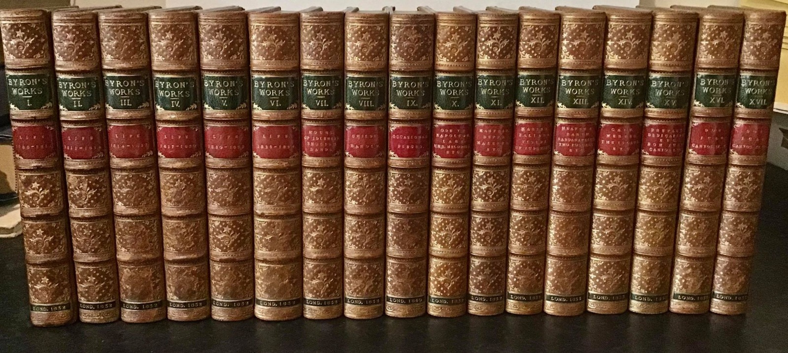 1832 the Works of Lord Byron  by  Thomas Moore, Complete in 17 Volumes, Full Leather Bindings (1 of 9)