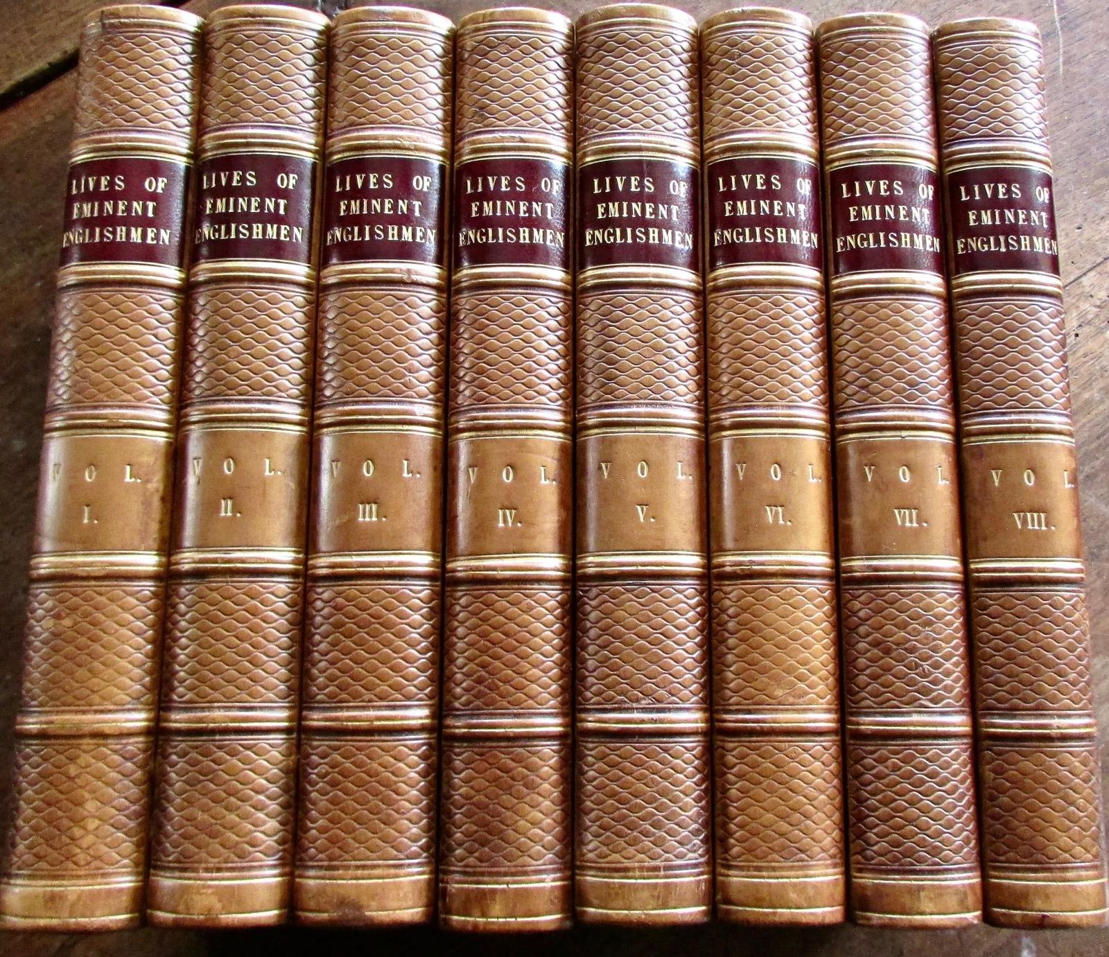 1837 Lives of Eminent & Illustrious Englishmen 8 x Volume Set Antique Leather Bound