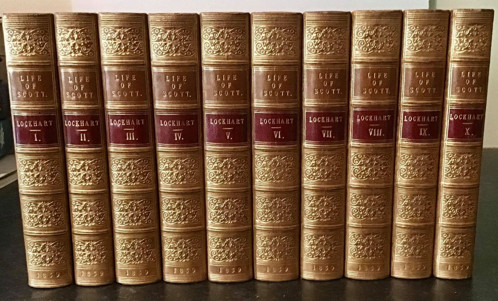 1839 Memoirs of the Life of Sir Walter Scott by J. G. Lockhart, Complete in 10 Volumes, Full Leather Bindings