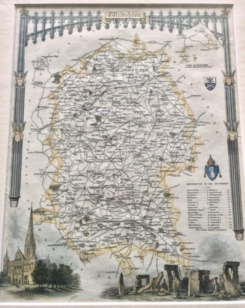 1840 Decorated Map of Wiltshire by Thomas Moule Hand Coloured & Mounted