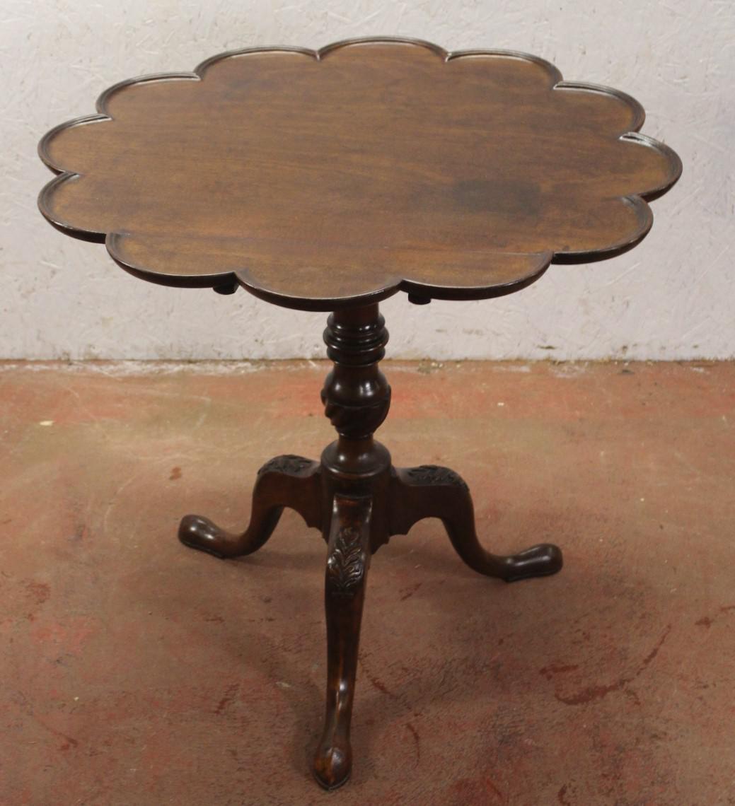 1850's Elegant Shaped Mahogany Tripod Side Table on Cab Legs
