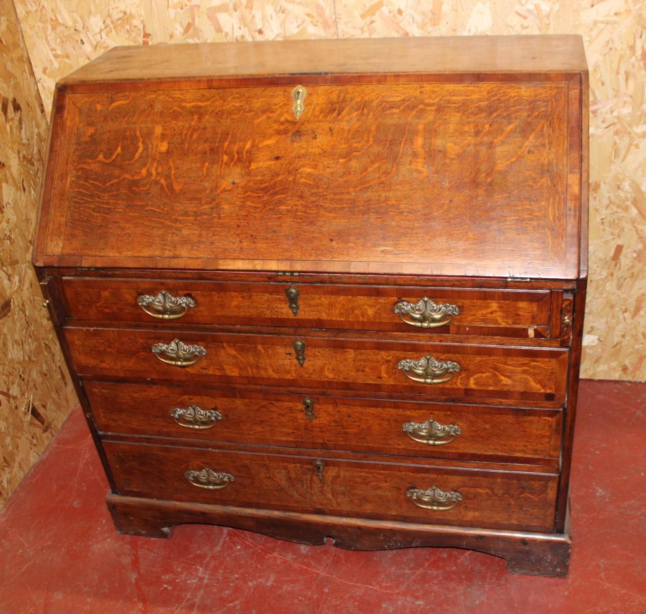 1850's Oak Bureaux with Red Leather Inset