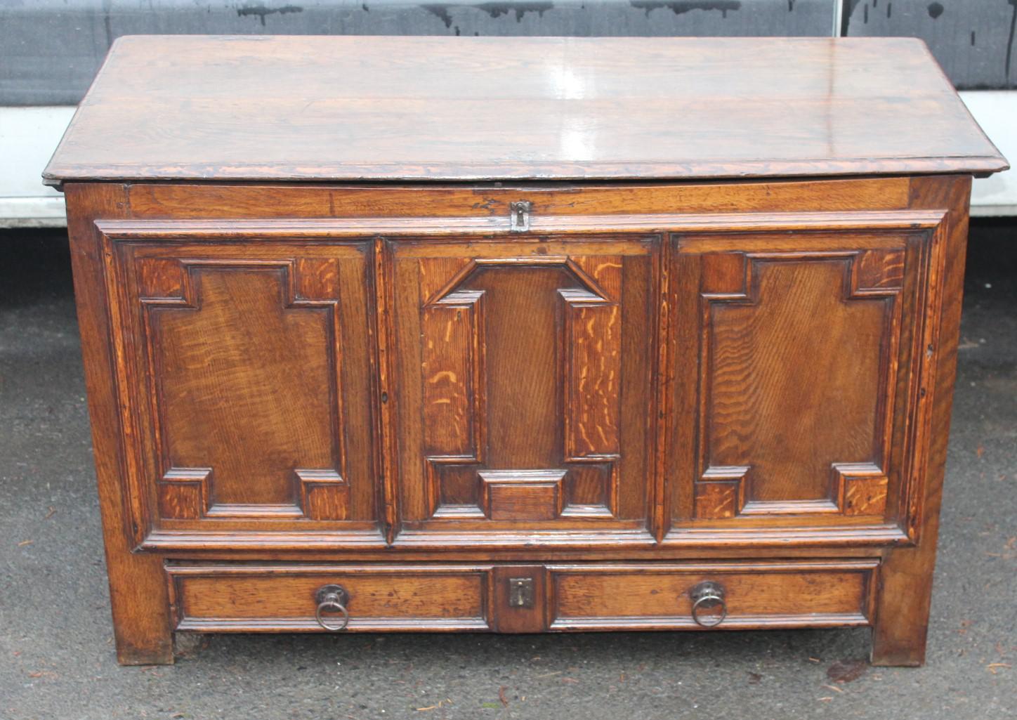 1850's Oak Coffer with Drawer at Base + Original Hinges