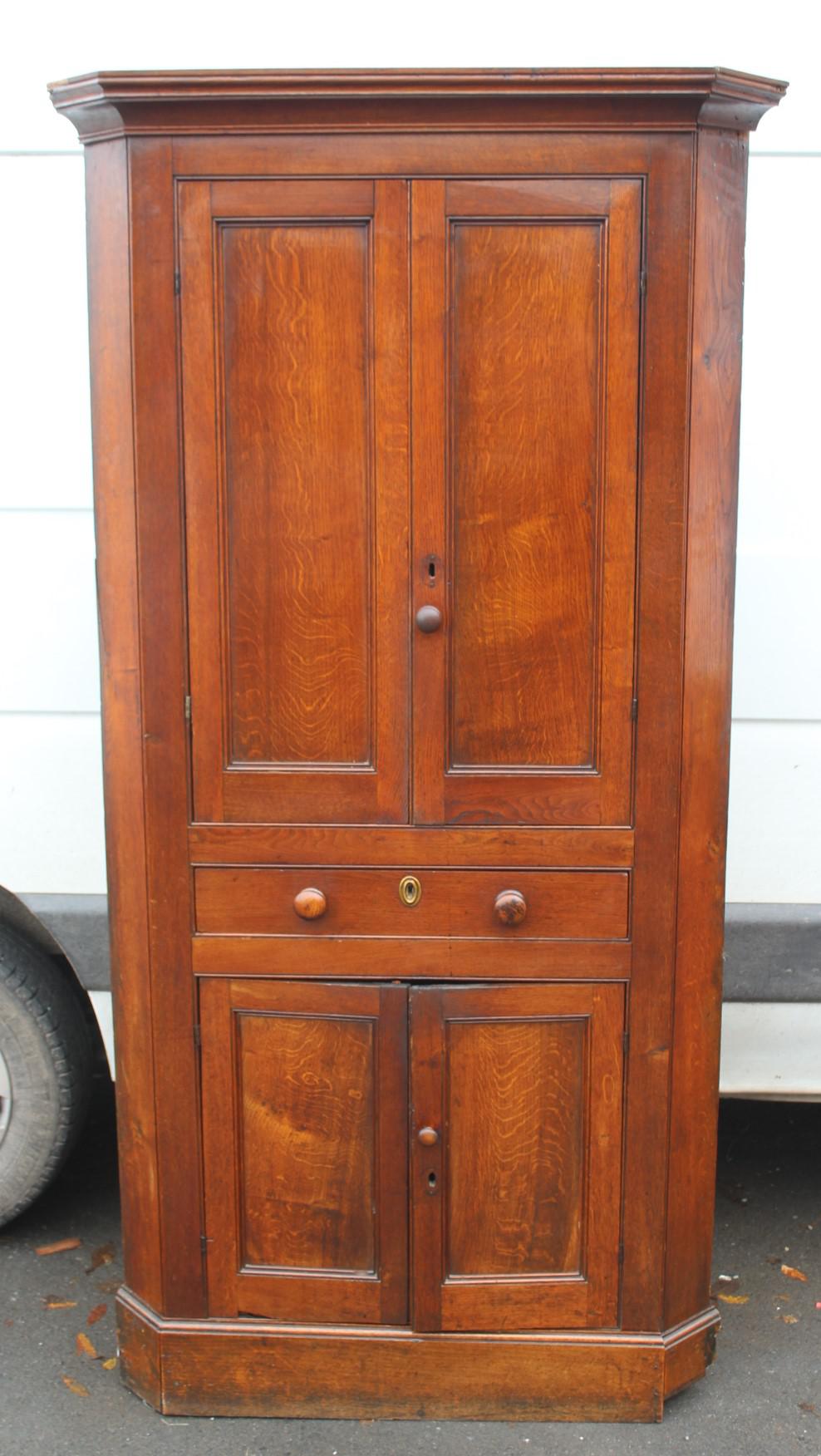 1850's Oak Corner Cupboard with Double Doors and Drawer