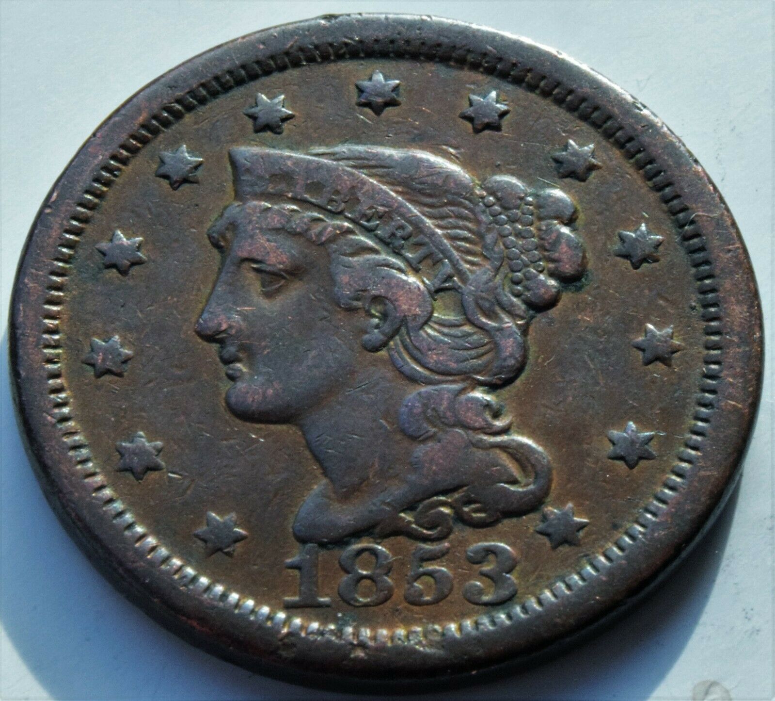 1853 United States of America Large Matron Head Copper Cent High Grade Coin