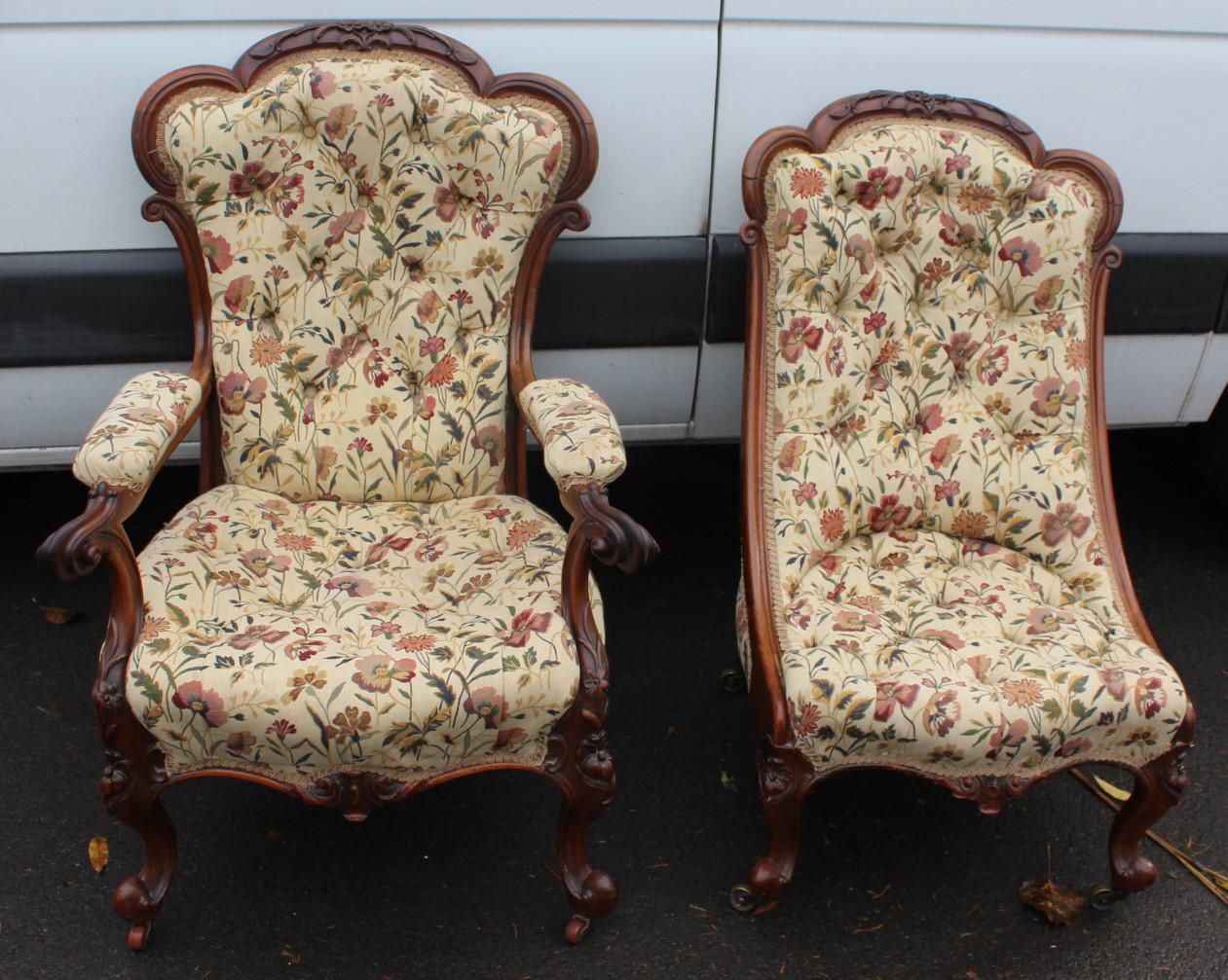 1859 Quality Beautiful Rosewood Mummy and Daddy Chair in Floral Upholstery