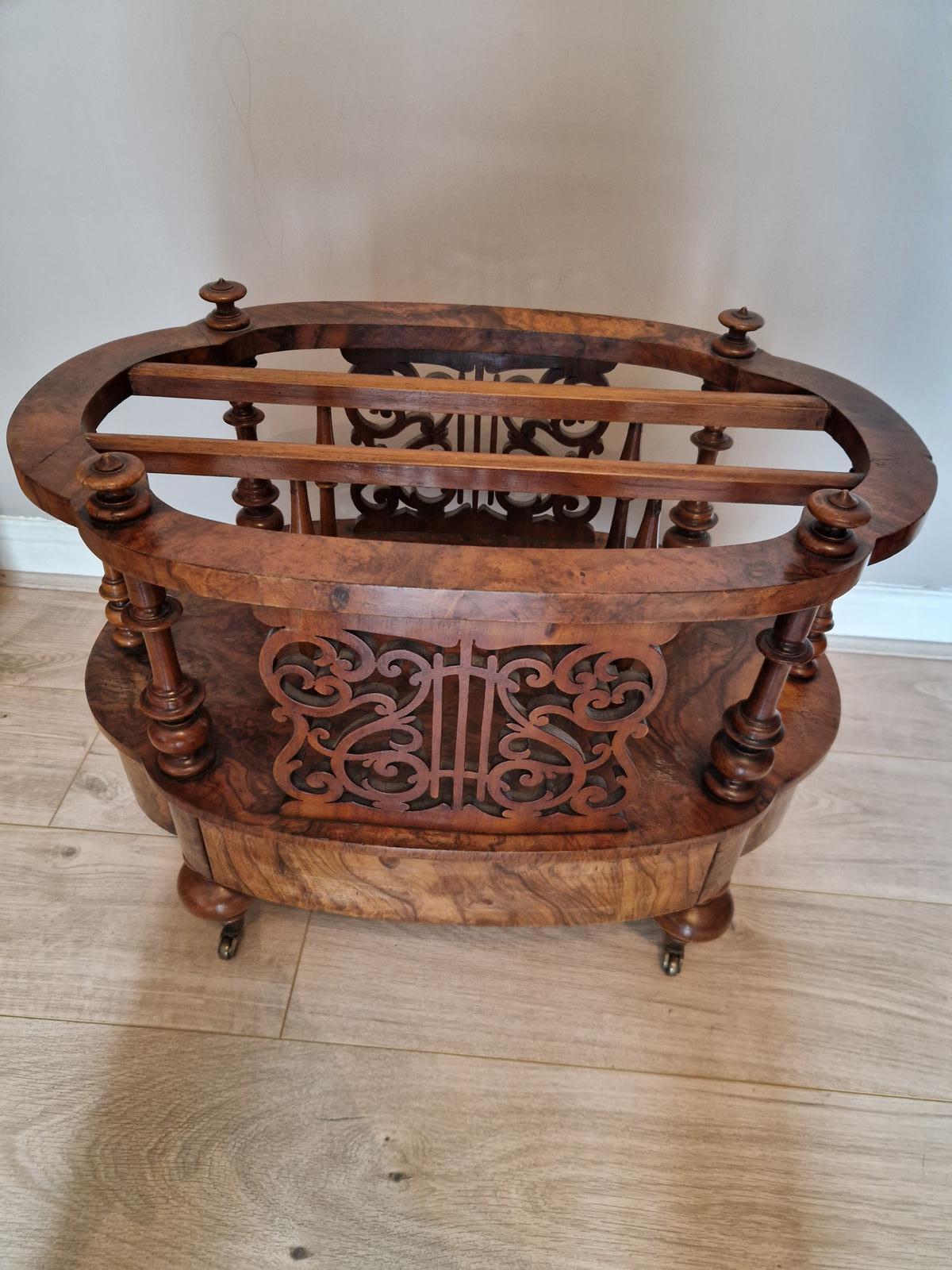 1860 Burr Walnut Canterbury on Wheels with Drawer