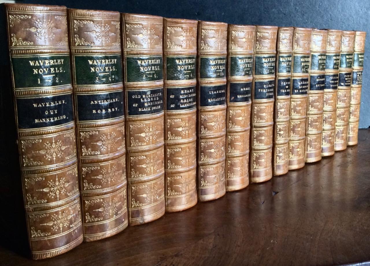 1862 Large Leather Bound Set The Novels of Sir Walter Scott 25 Books In 13 Vols