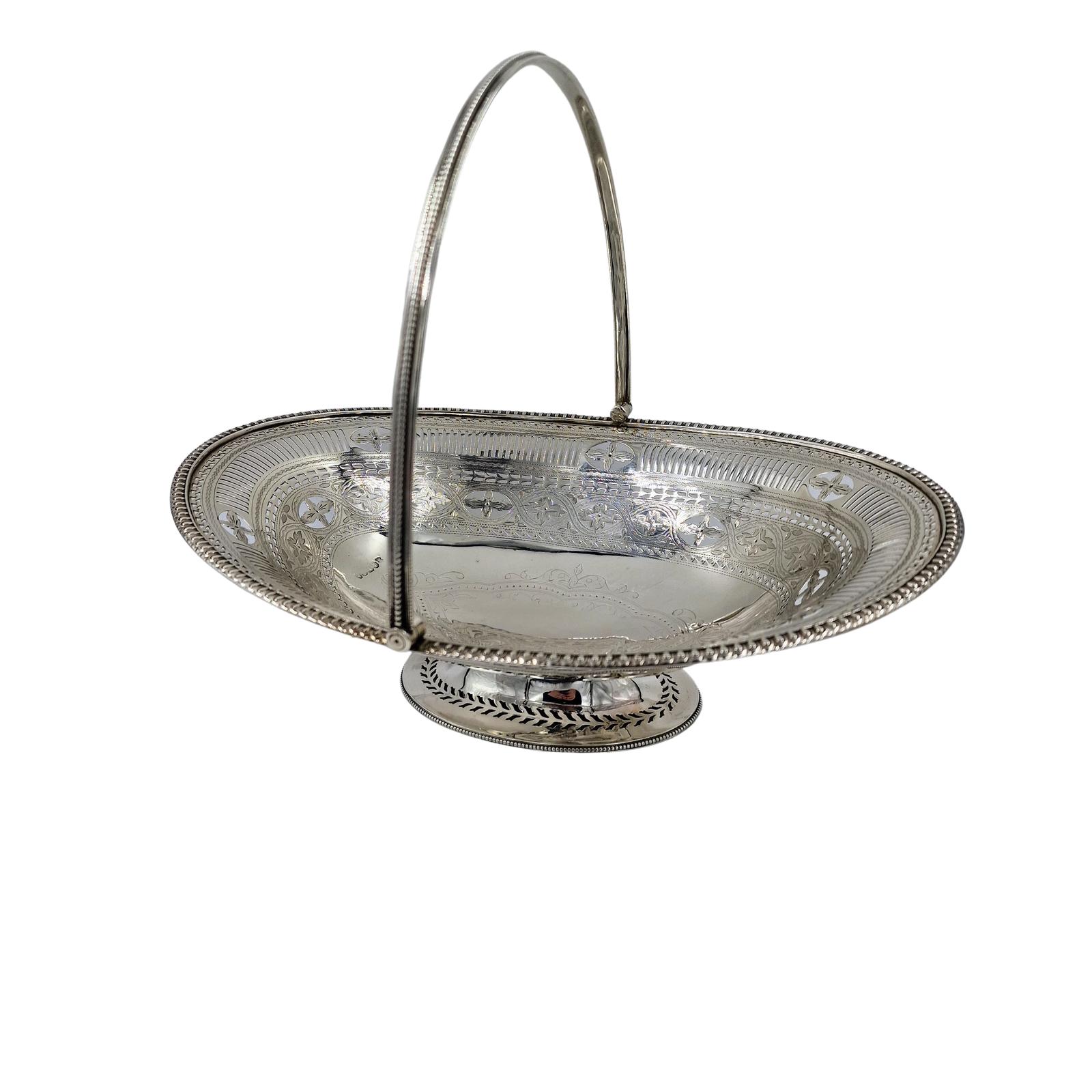 1864 Antique Solid Sterling Silver Large Swing Handle Basket 526g