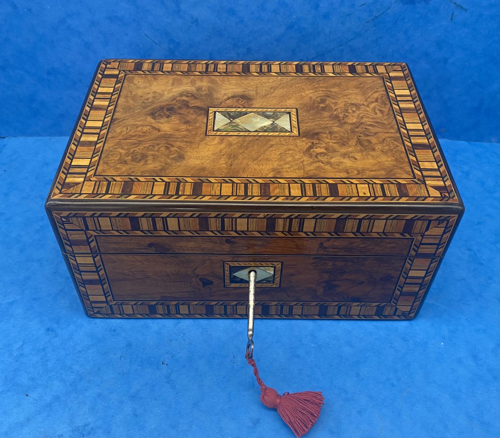 1870 Walnut Jewellery Box with Tunbridge Ware Inlay