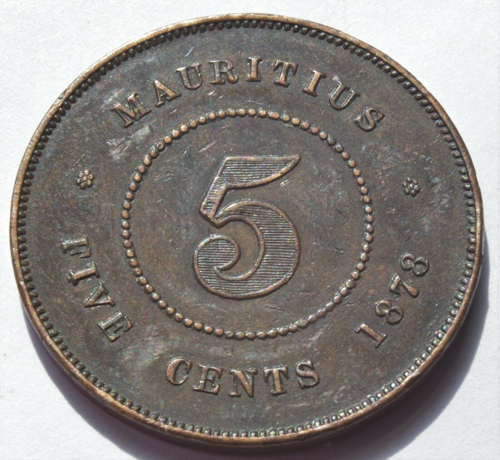 1878 Mauritius Queen Victoria 5 Cents High Grade Low Mintage! Coin