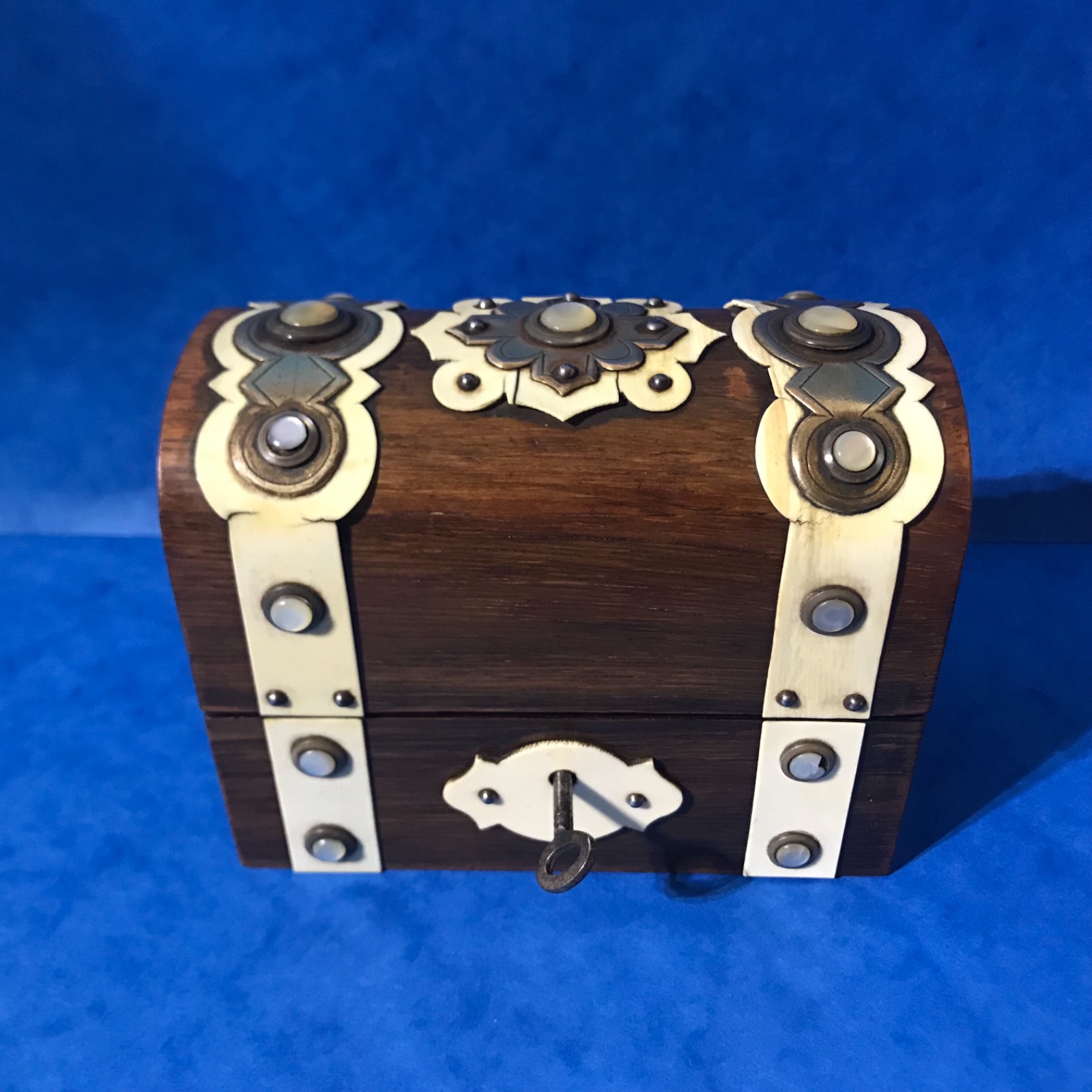 1880 French Brass Ivory Bound & Mother of Pearl Scent Casket