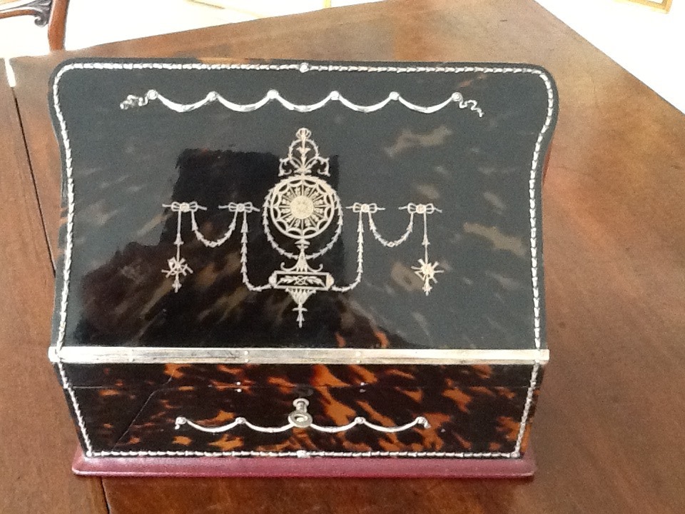 1880 Victorian Tortoiseshell & Silver Stationery Box