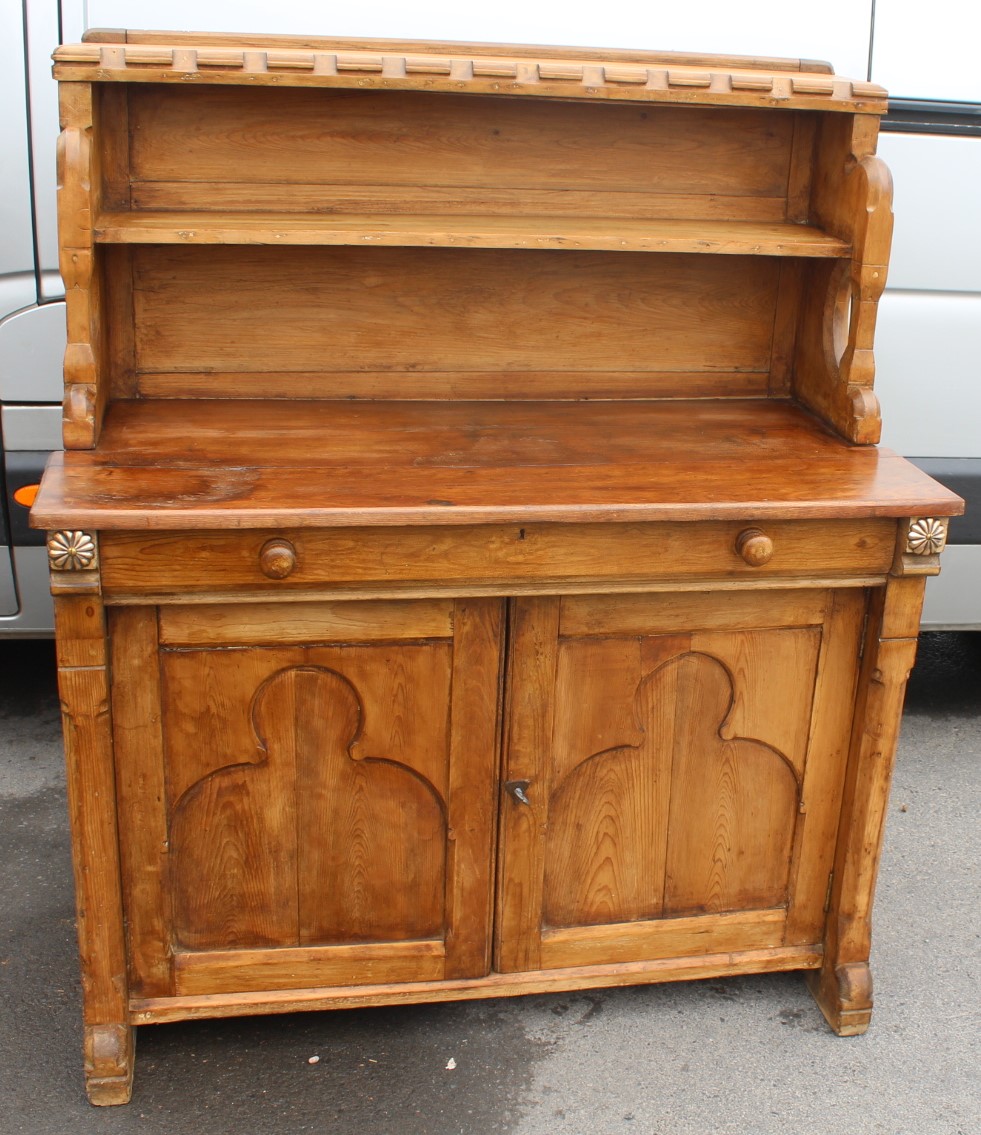 1880s Antique Pine Country Arts & Crafts Chiffonier with Display Back