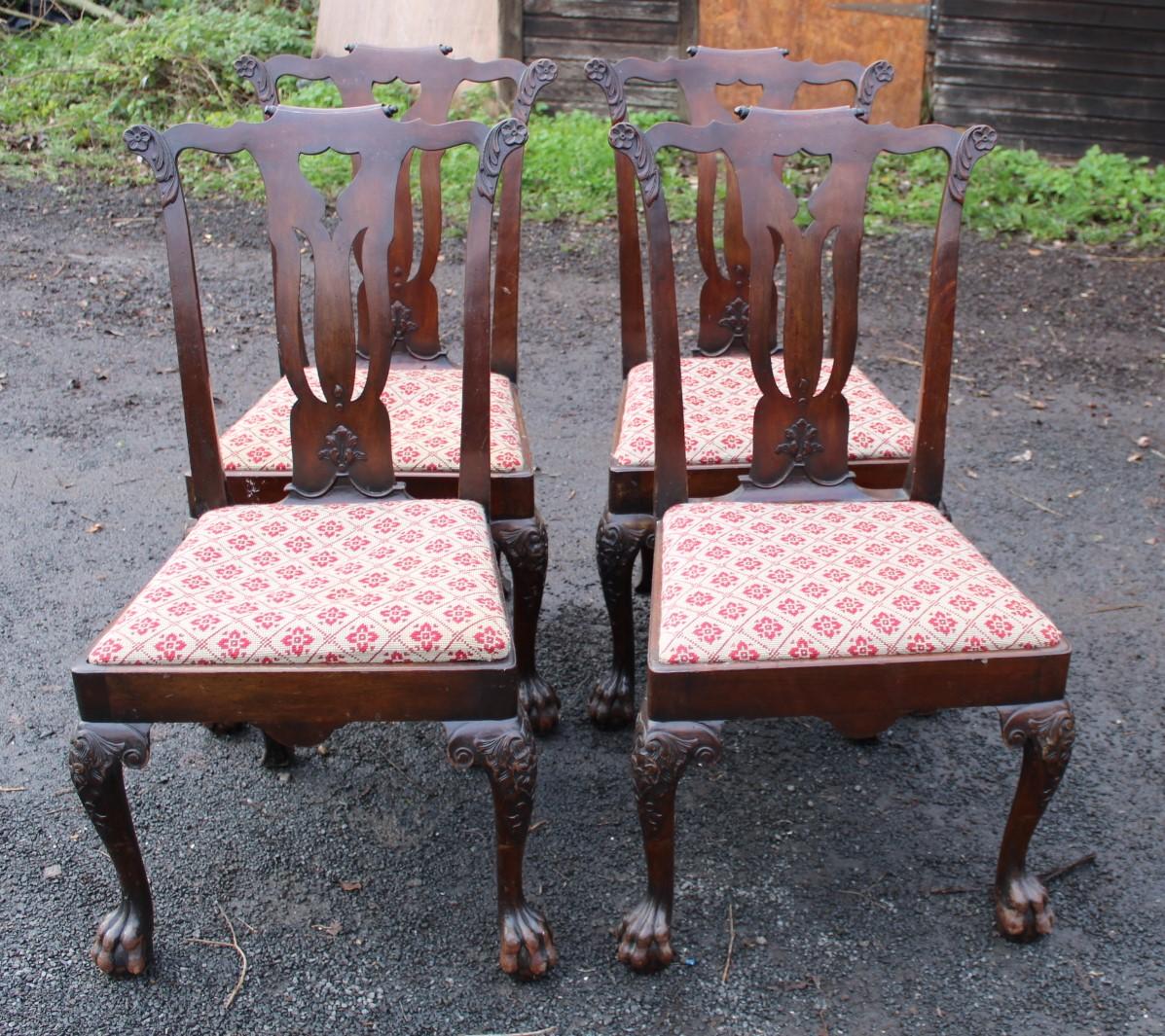 1880's Set 4 Mahogany Ball and Claw Feet Highback Chairs