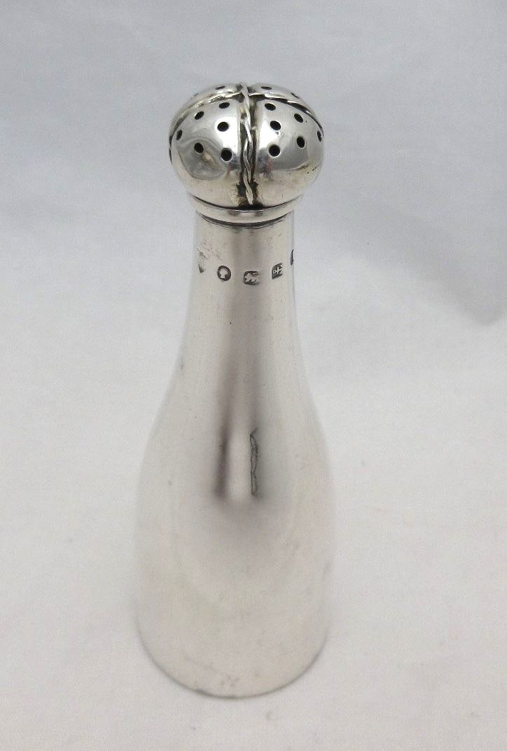 1888 Antique Silver Champagne Bottle Pepper Pepperette