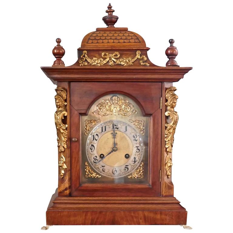 1890 German Bell-Top Walnut Bracket Mantel Clock by Junghans
