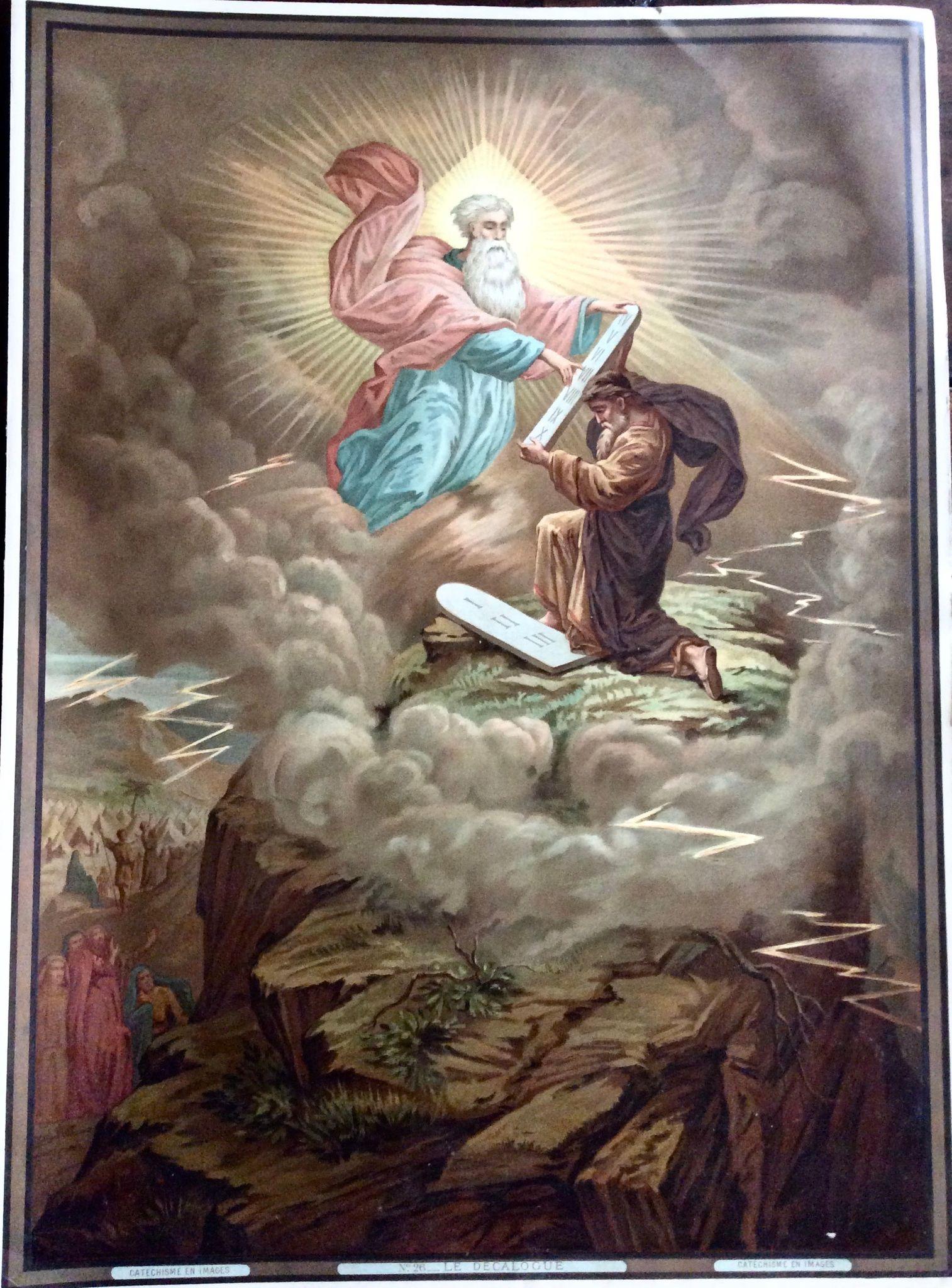 1890 Large French Antique Chromolithograph Print of The Ten Commandments Rare (1 of 3)
