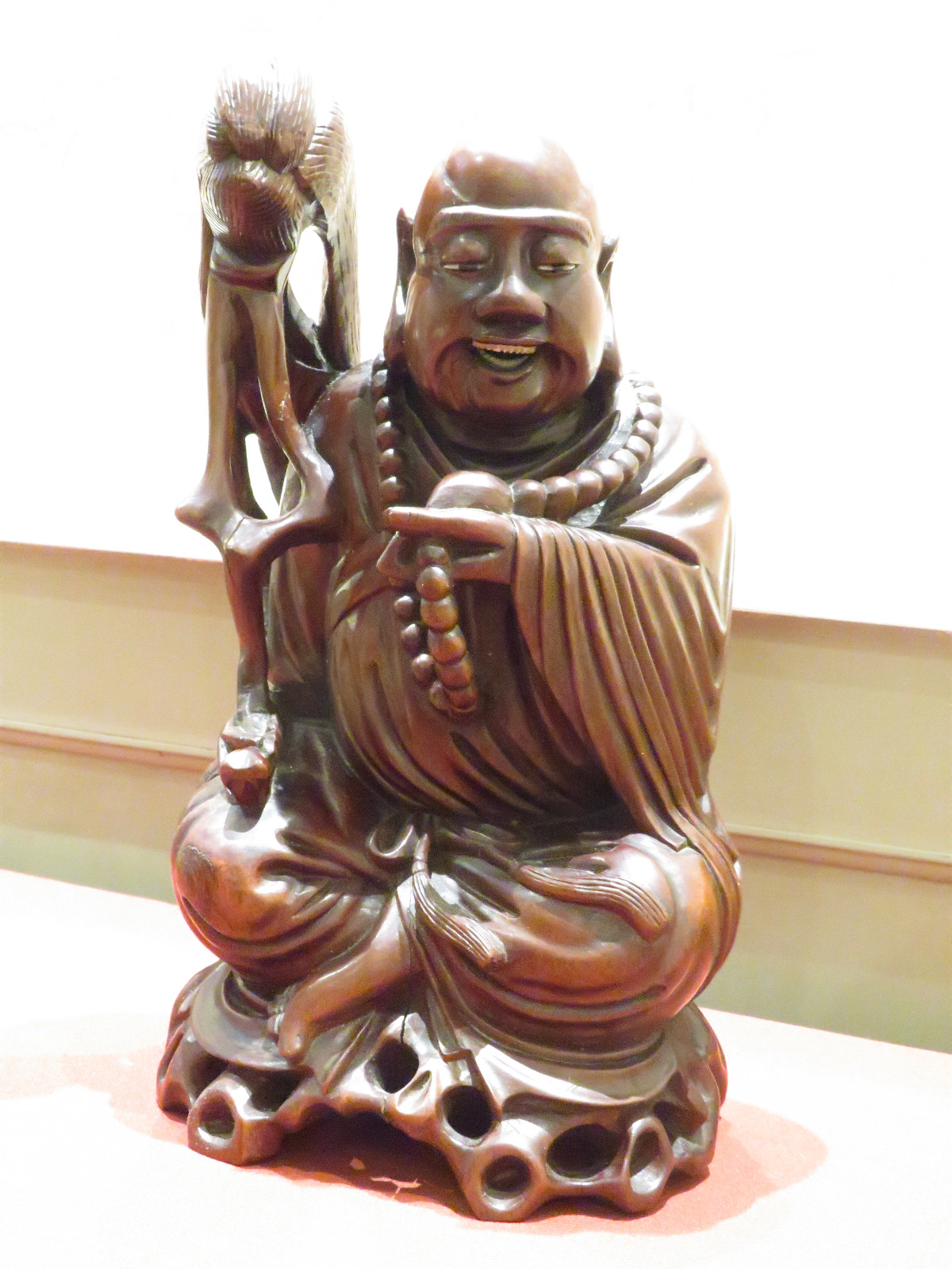 1890 Large Japanese Wose Man Buddha Hardwood Carving