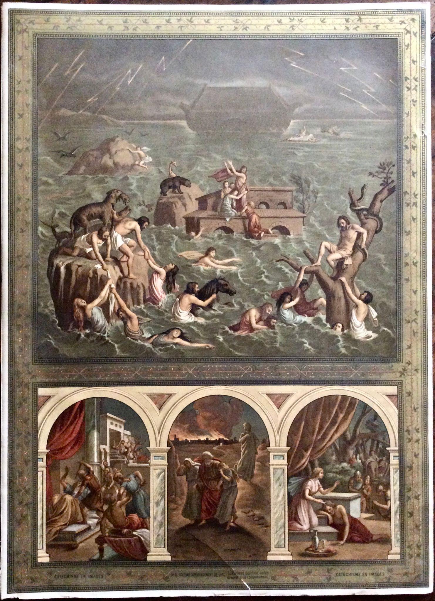 1890 Noah's Ark Antique Print Large French Religious Chromolithograph Coloured (1 of 3)