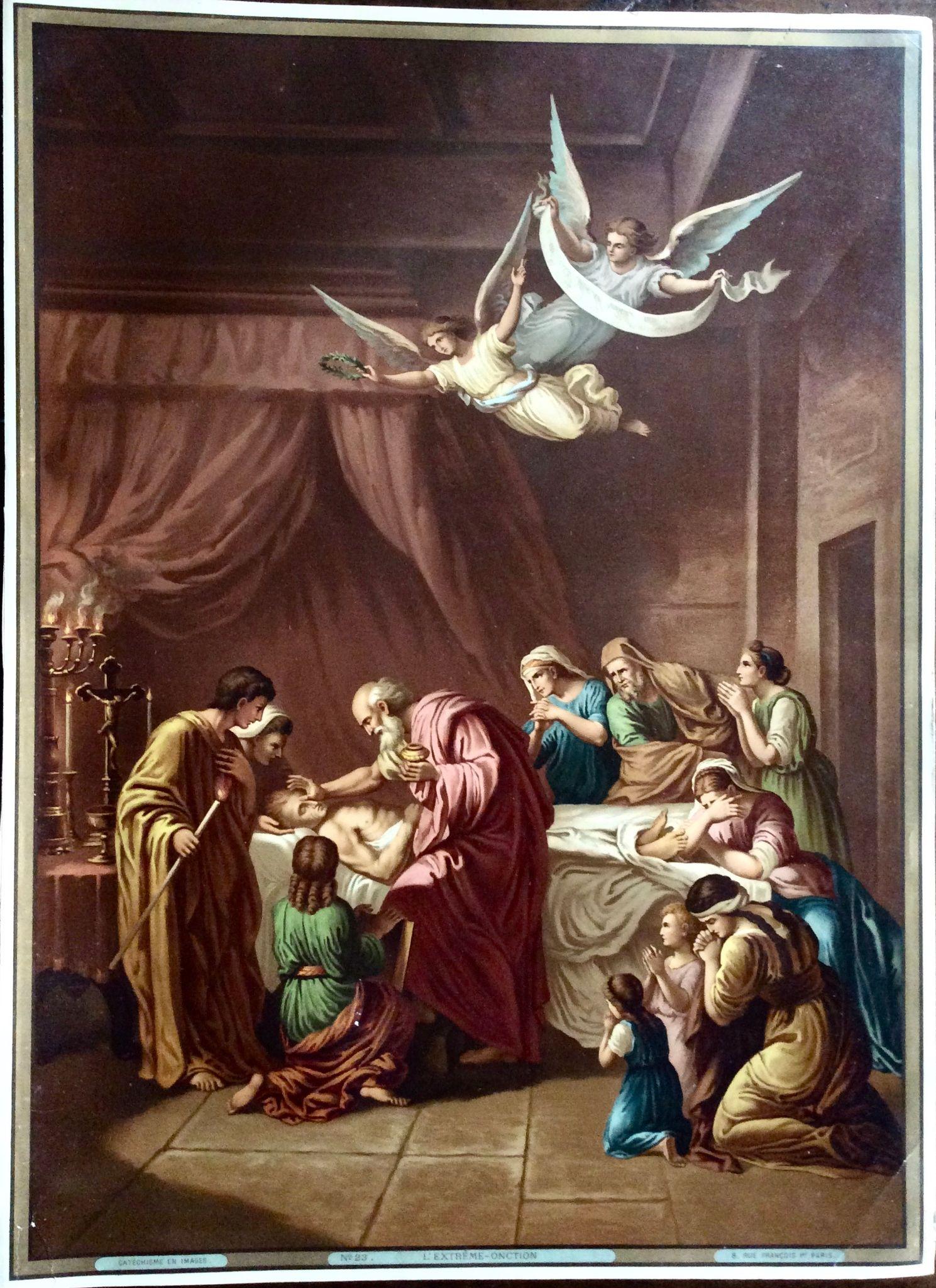 1890 Religious French Chromolithograph Print of Angels