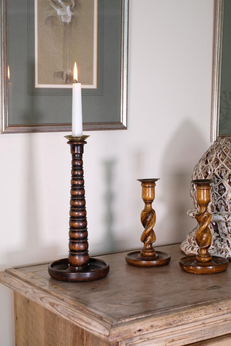 1890's Graduated Oak Bobbin Candle Holder