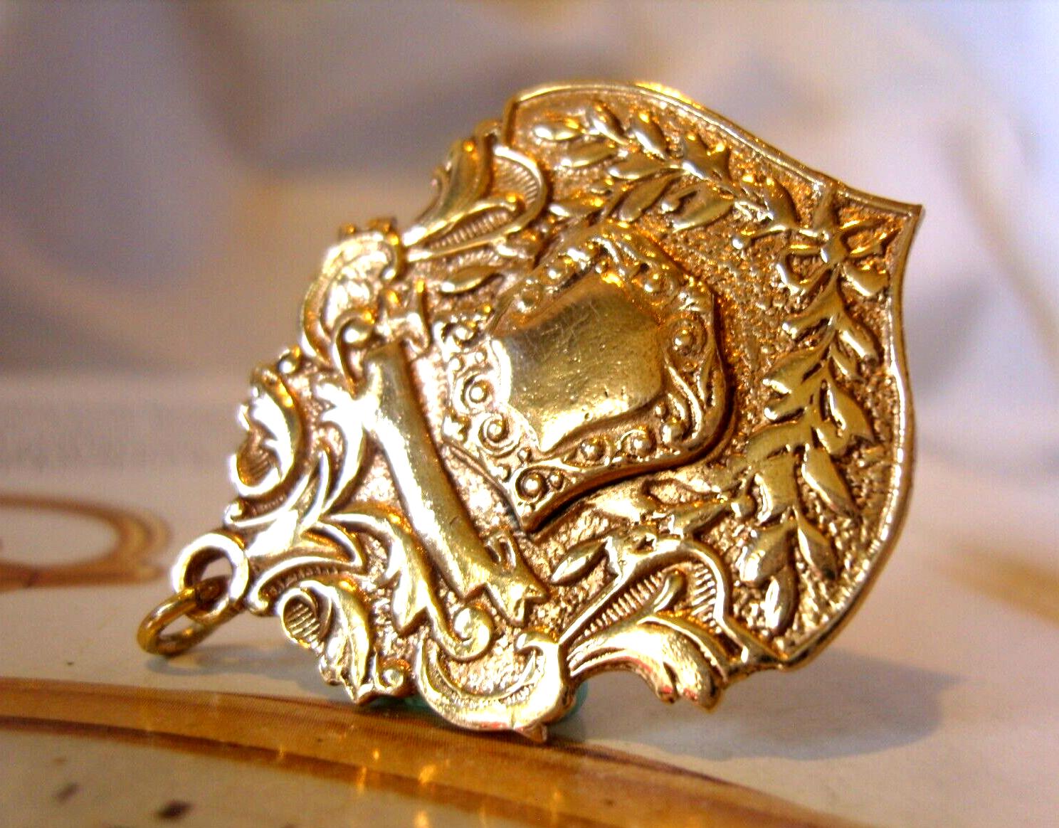 1890s Victorian Pocket Watch Chain Shield Fob 18ct Gold Plated Large Antique Fob