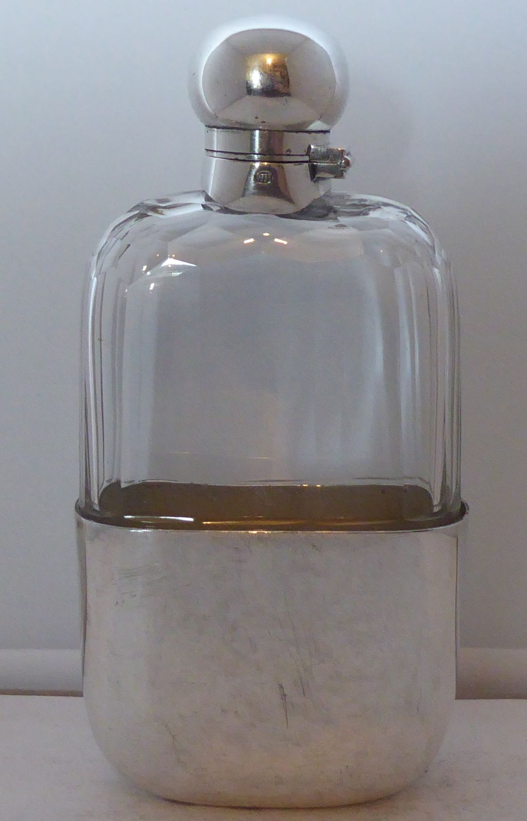 1890s William Hutton Silver Plated Cut Glass Hip Flask 12 Fl Oz