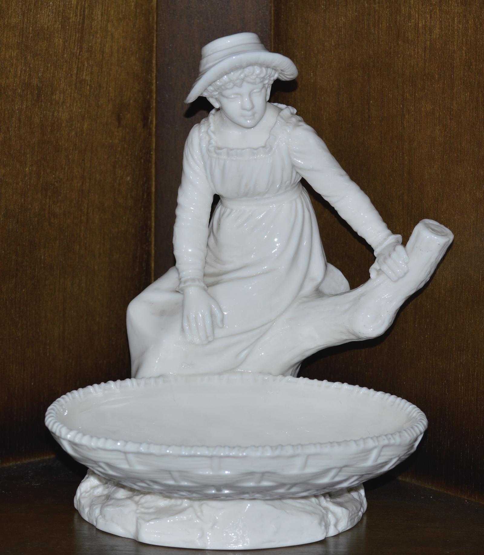 1893 Royal Worcester Figure of a Girl Seated Upon a Tree Stump - Hadley Mark