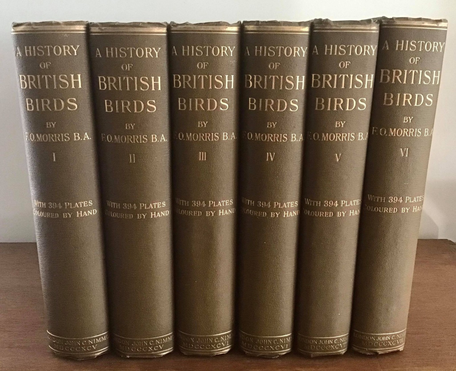 1895 a History of British Birds by Rev. F. O. Morris, Complete Set in Six Volumes, Fourth Edition